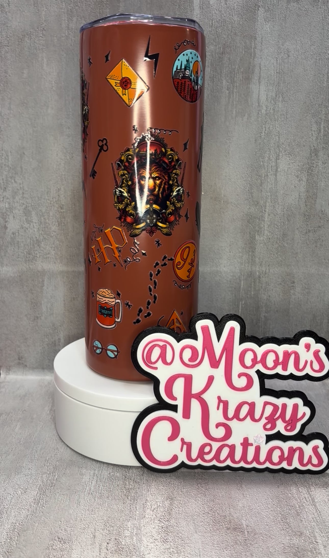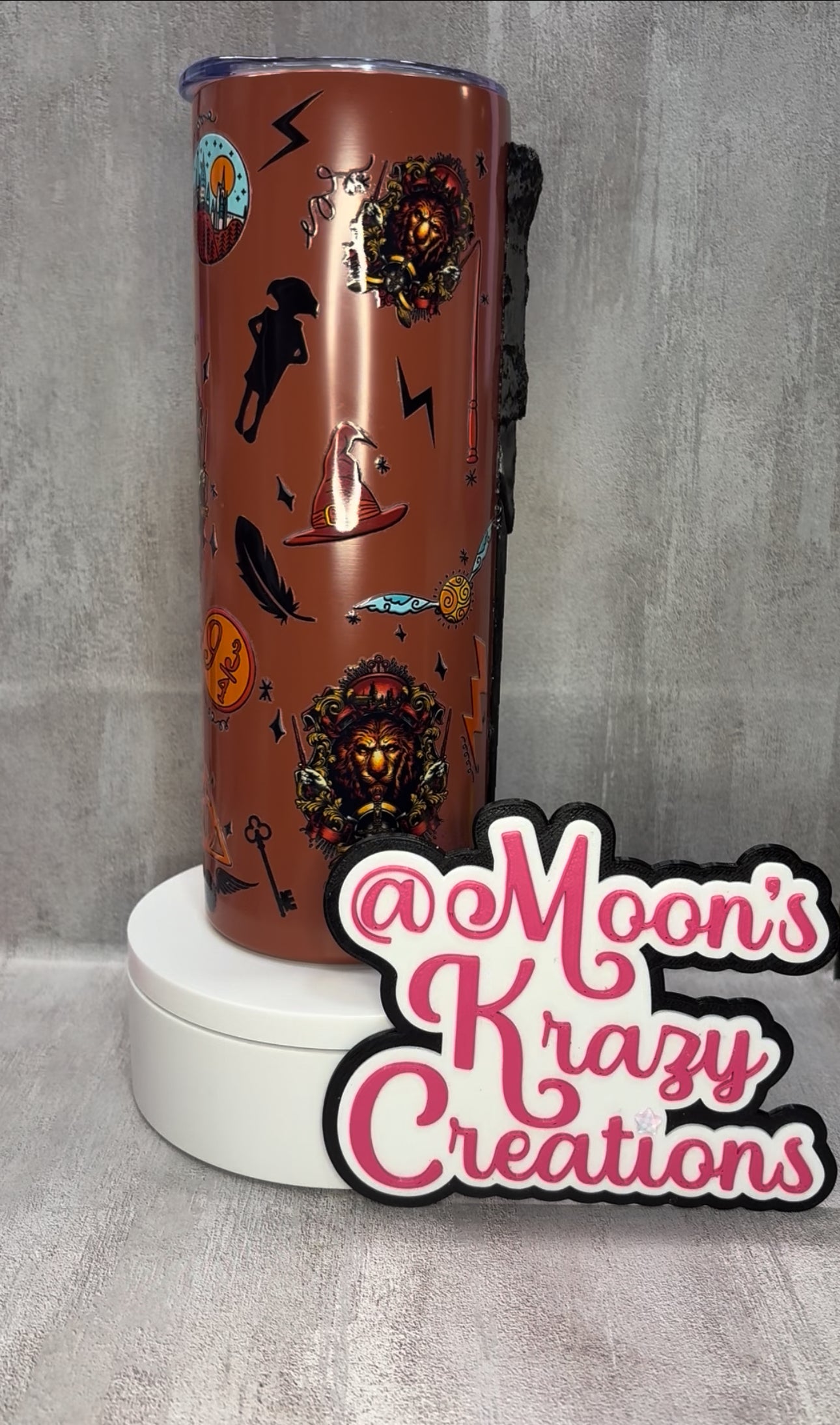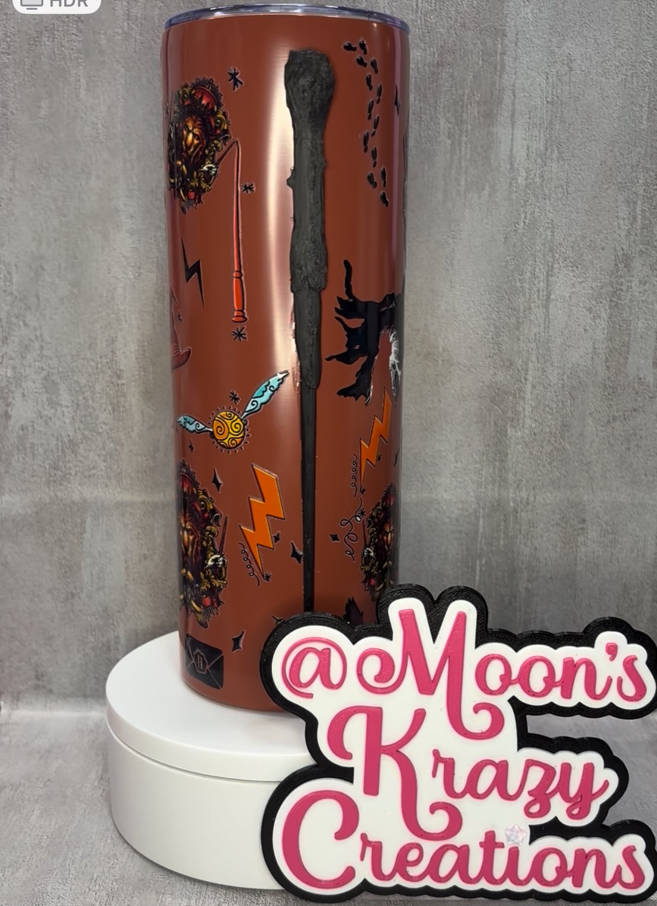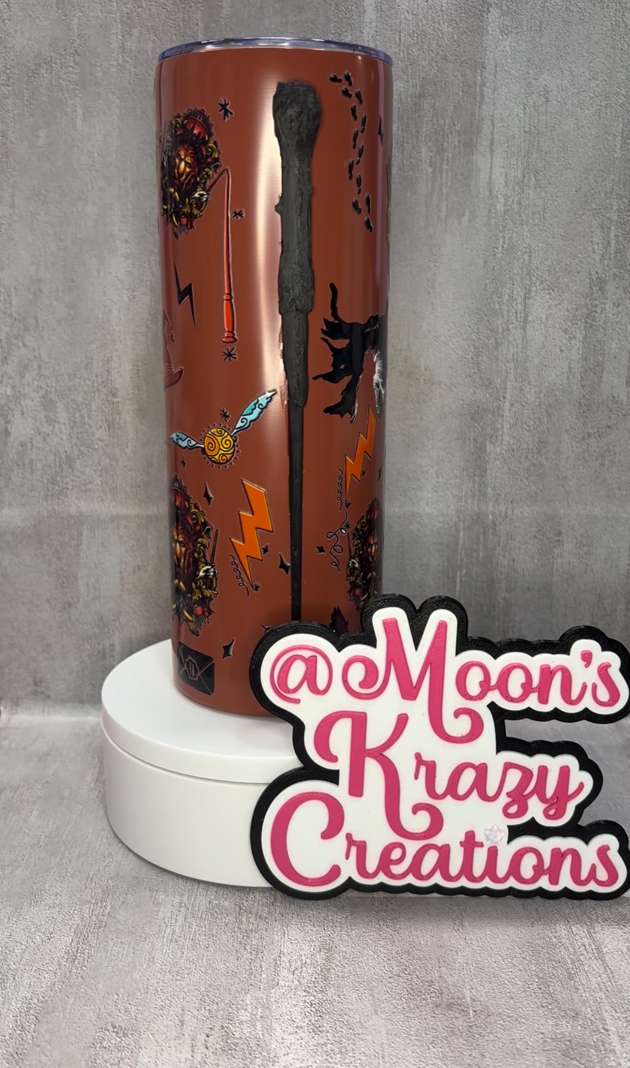 20oz Potter Head house cup with a 3D printed wand.