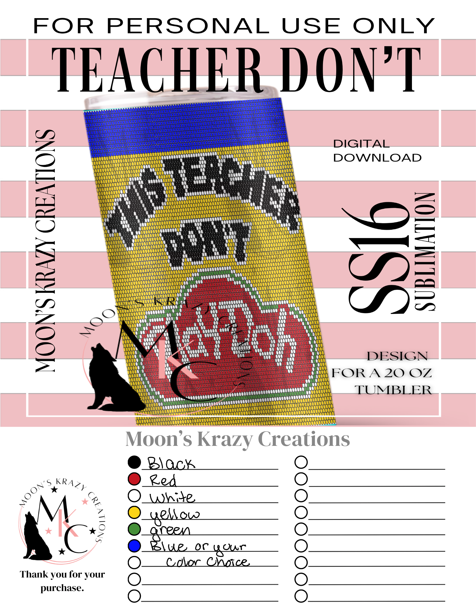 If you wish to use this template for commercial purposes, please contact Amber at Moons Krazy Creations for licensing information."